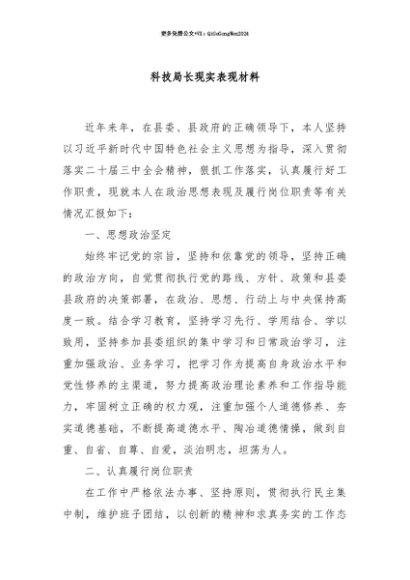 【七哥公文】2025年:【七哥公文】科技局长现实表现材料+更多免费公文+VX:QiGeGongWen2024+更多免费公文+VX:QiGeGongWen2024