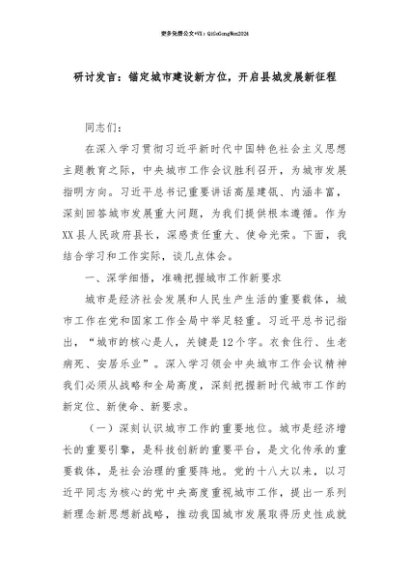 【七哥公文】2025年:【七哥公文】研讨发言:锚定城市建设新方位,开启县城发展新征程+更多免费公文+VX:QiGeGongWen2024+更多免费公文+VX:QiGeGongWen2024