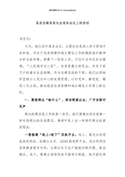 【七哥公文】2025年:【七哥公文】某县住建局局长在局务会议上的讲话+更多免费公文+VX:QiGeGongWen2024+更多免费公文+VX:QiGeGongWen2024