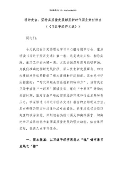 【七哥公文】2025年:【七哥公文】研讨发言:坚持高质量发展彰显新时代国企责任担当(《习近平经济文选》)+更多免费公文+VX:QiGeGongWen2024+更多免费公文+VX:QiGeGongWen2024