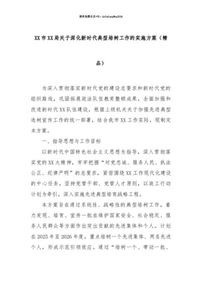 【七哥公文】2025年:【七哥公文】XX市XX局关于深化新时代典型培树工作的实施方案(精品)+更多免费公文+VX:QiGeGongWen2024+更多免费公文+VX:QiGeGongWen2024