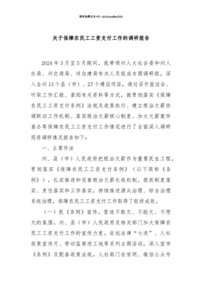 【七哥公文】2025年:【七哥公文】关于保障农民工工资支付工作的调研报告+更多免费公文+VX:QiGeGongWen2024+更多免费公文+VX:QiGeGongWen2024