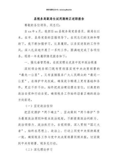【七哥公文】2025年:【七哥公文】县税务局副局长试用期转正述职报告+更多免费公文+VX:QiGeGongWen2024+更多免费公文+VX:QiGeGongWen2024