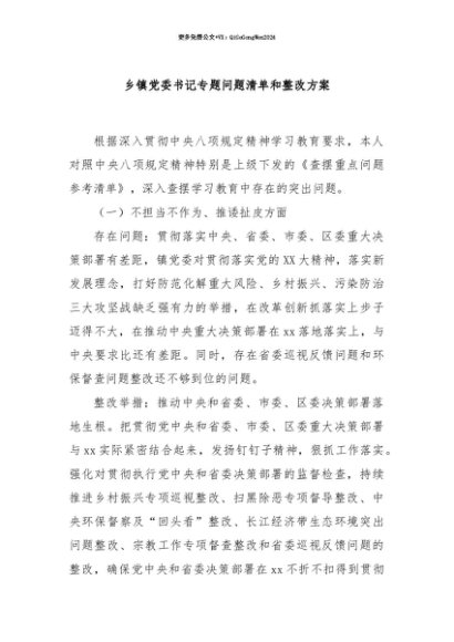 【七哥公文】2025年:【七哥公文】乡镇党委书记专题问题清单和整改方案+更多免费公文+VX:QiGeGongWen2024+更多免费公文+VX:QiGeGongWen2024