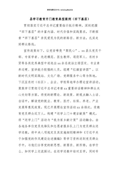 【七哥公文】2025年:【七哥公文】县学习教育开门教育典型案例(四下基层)+更多免费公文+VX:QiGeGongWen2024+更多免费公文+VX:QiGeGongWen2024