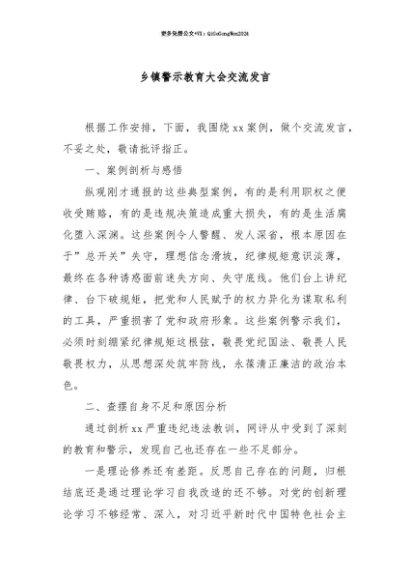 【七哥公文】2025年:【七哥公文】乡镇警示教育大会交流发言+更多免费公文+VX:QiGeGongWen2024+更多免费公文+VX:QiGeGongWen2024