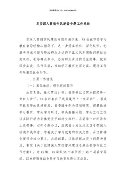 【七哥公文】2025年:【七哥公文】县委深入贯彻作风建设专题工作总结+更多免费公文+VX:QiGeGongWen2024+更多免费公文+VX:QiGeGongWen2024