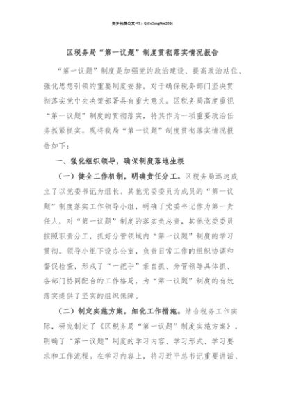 【七哥公文】2025年:【七哥公文】区税务局“第一议题”制度贯彻落实情况报告+更多免费公文+VX:QiGeGongWen2024+更多免费公文+VX:QiGeGongWen2024