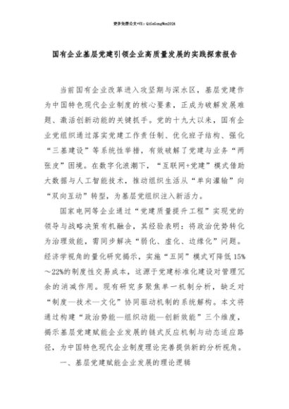 【七哥公文】2025年:【七哥公文】国有企业基层党建引领企业高质量发展的实践探索报告+更多免费公文+VX:QiGeGongWen2024+更多免费公文+VX:QiGeGongWen2024