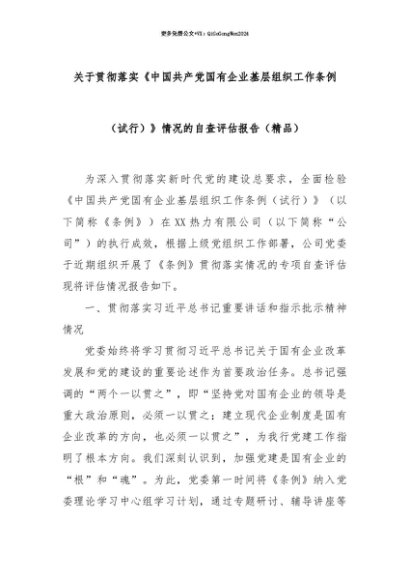 【七哥公文】2025年:【七哥公文】关于贯彻落实《中国共产党国有企业基层组织工作条例(试行)》情况的自查评估报告(精品)+更多免费公文+VX:QiGeGongWen2024+更多免费公文+VX:QiGeGongWen2024