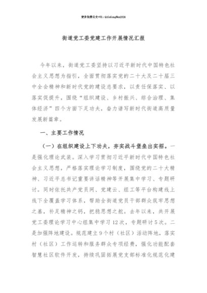 【七哥公文】2025年:【七哥公文】街道党工委党建工作开展情况汇报+更多免费公文+VX:QiGeGongWen2024+更多免费公文+VX:QiGeGongWen2024