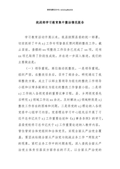 【七哥公文】2025年:【七哥公文】统战部学习教育集中整治情况报告+更多免费公文+VX:QiGeGongWen2024+更多免费公文+VX:QiGeGongWen2024