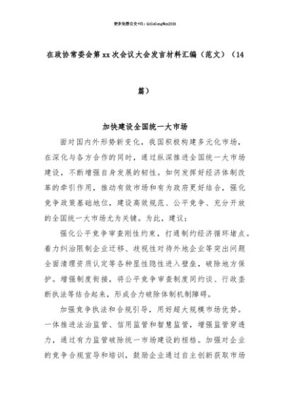 【七哥公文】2025年:【七哥公文】(14篇)在政协常委会第xx次会议大会发言材料汇编(范文)+更多免费公文+VX:QiGeGongWen2024+更多免费公文+VX:QiGeGongWen2024