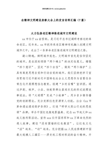 【七哥公文】2025年:【七哥公文】(7篇)在精神文明建设表彰大会上的发言材料汇编+更多免费公文+VX:QiGeGongWen2024+更多免费公文+VX:QiGeGongWen2024
