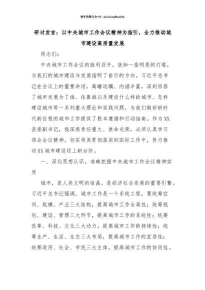 【七哥公文】2025年:【七哥公文】研讨发言:以中央城市工作会议精神为指引,全力推动城市建设高质量发展+更多免费公文+VX:QiGeGongWen2024+更多免费公文+VX:QiGeGongWen2024