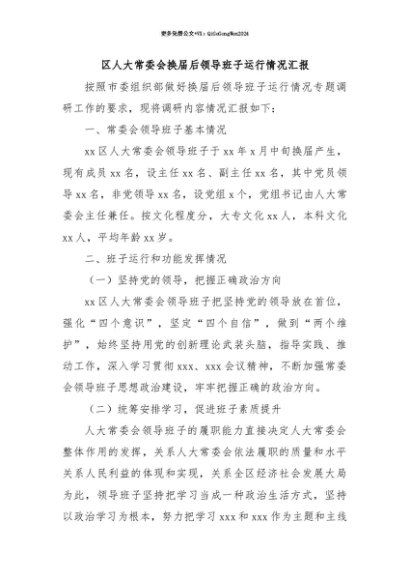 【七哥公文】2025年:【七哥公文】区人大常委会换届后领导班子运行情况汇报+更多免费公文+VX:QiGeGongWen2024+更多免费公文+VX:QiGeGongWen2024