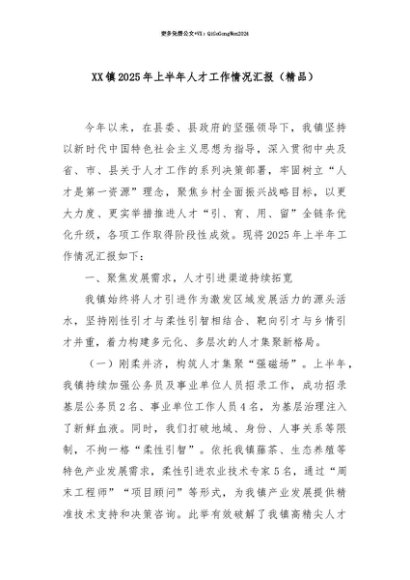【七哥公文】2025年:【七哥公文】XX镇2025年上半年人才工作情况汇报(精品)+更多免费公文+VX:QiGeGongWen2024+更多免费公文+VX:QiGeGongWen2024