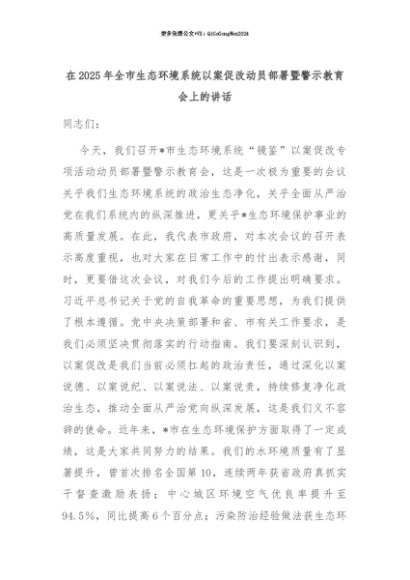 【七哥公文】2025年:【七哥公文】在2025年全市生态环境系统以案促改动员部署暨警示教育会上的讲话+更多免费公文+VX:QiGeGongWen2024+更多免费公文+VX:QiGeGongWen2024