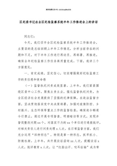 【七哥公文】2025年:【七哥公文】区纪委书记在全区纪检监察系统半年工作推进会上的讲话+更多免费公文+VX:QiGeGongWen2024+更多免费公文+VX:QiGeGongWen2024