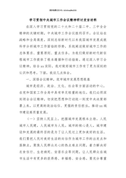 【七哥公文】2025年:【七哥公文】学习贯彻中央城市工作会议精神研讨发言材料+更多免费公文+VX:QiGeGongWen2024+更多免费公文+VX:QiGeGongWen2024