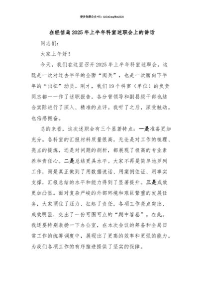【七哥公文】2025年:【七哥公文】在经信局2025年上半年科室述职会上的讲话+更多免费公文+VX:QiGeGongWen2024+更多免费公文+VX:QiGeGongWen2024