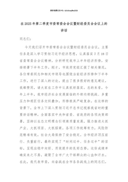 【七哥公文】2025年:【七哥公文】在2025年第二季度市委常委会会议暨财经委员会会议上的讲话+更多免费公文+VX:QiGeGongWen2024+更多免费公文+VX:QiGeGongWen2024