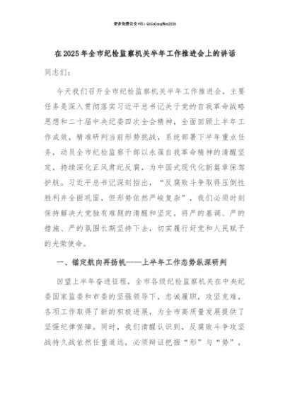 【七哥公文】2025年:【七哥公文】在2025年全市纪检监察机关半年工作推进会上的讲话+更多免费公文+VX:QiGeGongWen2024+更多免费公文+VX:QiGeGongWen2024
