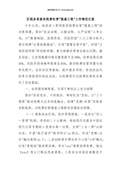 【七哥公文】2025年:【七哥公文】区税务局落实税费征管强基工程工作情况汇报+更多免费公文+VX:QiGeGongWen2024+更多免费公文+VX:QiGeGongWen2024