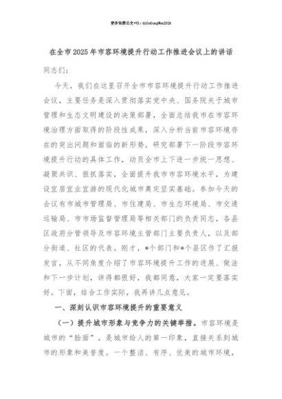 【七哥公文】2025年:【七哥公文】在全市2025年市容环境提升行动工作推进会议上的讲话+更多免费公文+VX:QiGeGongWen2024+更多免费公文+VX:QiGeGongWen2024
