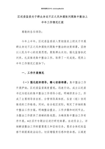 【七哥公文】2025年:【七哥公文】区纪委监委关于群众身边不正之风和腐败问题集中整治上半年工作情况汇报+更多免费公文+VX:QiGeGongWen2024+更多免费公文+VX:QiGeGongWen2024