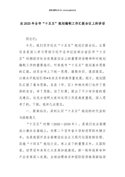【七哥公文】2025年:【七哥公文】在2025年全市“十五五”规划编制工作汇报会议上的讲话+更多免费公文+VX:QiGeGongWen2024+更多免费公文+VX:QiGeGongWen2024