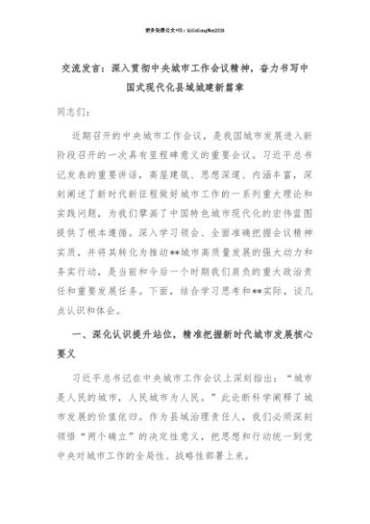 【七哥公文】2025年:【七哥公文】交流发言:深入贯彻中央城市工作会议精神,奋力书写中国式现代化县域城建新篇章+更多免费公文+VX:QiGeGongWen2024+更多免费公文+VX:QiGeGongWen2024