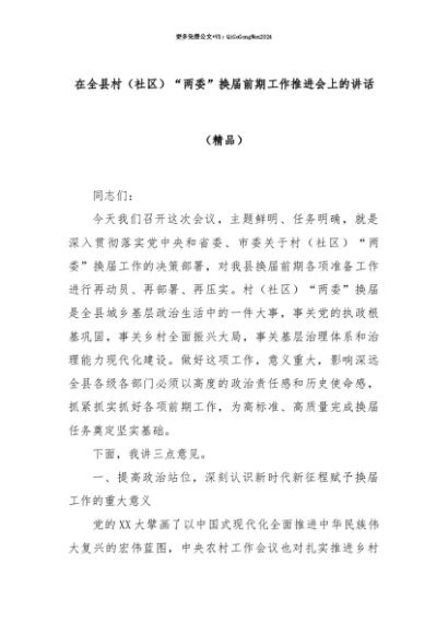【七哥公文】2025年:【七哥公文】在全县村(社区)“两委”换届前期工作推进会上的讲话(精品)+更多免费公文+VX:QiGeGongWen2024+更多免费公文+VX:QiGeGongWen2024