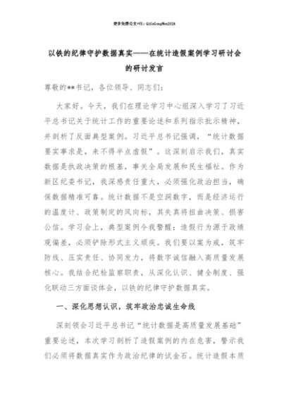 【七哥公文】2025年:【七哥公文】以铁的纪律守护数据真实——在统计造假案例学习研讨会的研讨发言+更多免费公文+VX:QiGeGongWen2024+更多免费公文+VX:QiGeGongWen2024