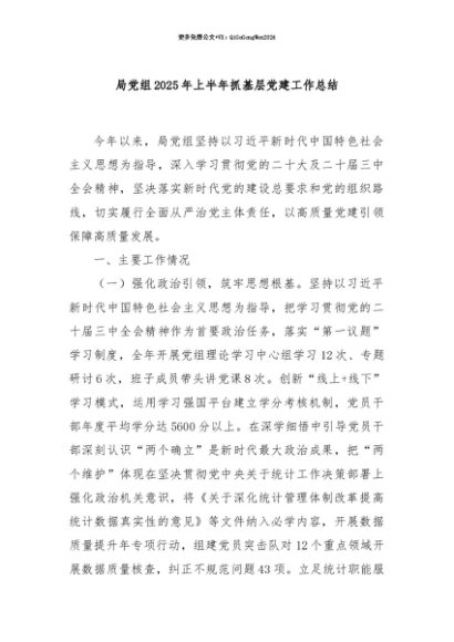 【七哥公文】2025年:【七哥公文】局党组2025年上半年抓基层党建工作总结+更多免费公文+VX:QiGeGongWen2024+更多免费公文+VX:QiGeGongWen2024