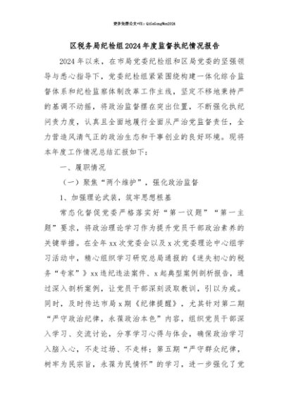 【七哥公文】2025年:【七哥公文】区税务局纪检组2024年度监督执纪情况报告+更多免费公文+VX:QiGeGongWen2024+更多免费公文+VX:QiGeGongWen2024