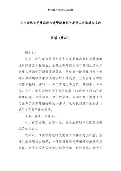 【七哥公文】2025年:【七哥公文】在市直机关党建品牌打造暨清廉机关建设工作推进会上的讲话(精品)+更多免费公文+VX:QiGeGongWen2024+更多免费公文+VX:QiGeGongWen2024