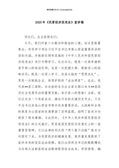 【七哥公文】2025年:【七哥公文】2025年《民营经济促进法》宣讲稿+更多免费公文+VX:QiGeGongWen2024+更多免费公文+VX:QiGeGongWen2024