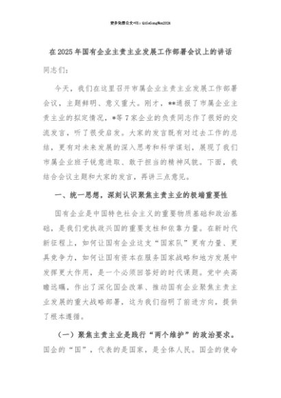 【七哥公文】2025年:【七哥公文】在2025年国有企业主责主业发展工作部署会议上的讲话+更多免费公文+VX:QiGeGongWen2024+更多免费公文+VX:QiGeGongWen2024