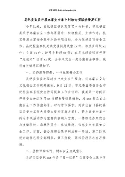 【七哥公文】2025年:【七哥公文】县纪委监委开展办案安全集中纠治专项活动情况汇报+更多免费公文+VX:QiGeGongWen2024+更多免费公文+VX:QiGeGongWen2024