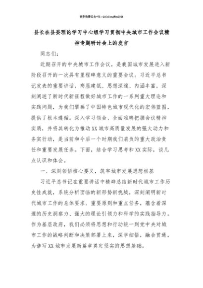 【七哥公文】2025年:【七哥公文】县长在县委理论学习中心组学习贯彻中央城市工作会议精神专题研讨会上的发言+更多免费公文+VX:QiGeGongWen2024+更多免费公文+VX:QiGeGongWen2024