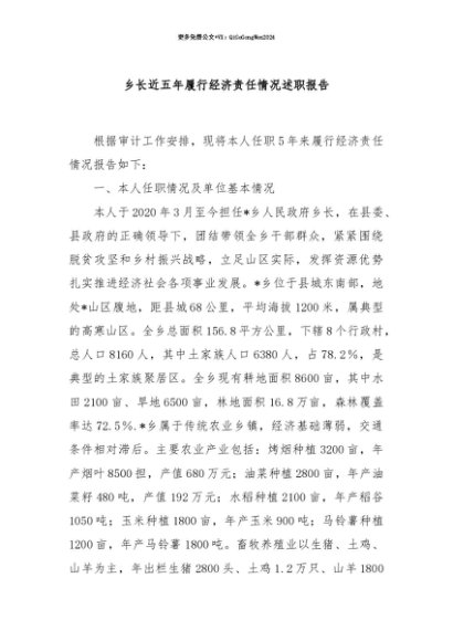 【七哥公文】2025年:【七哥公文】乡长近五年履行经济责任情况述职报告+更多免费公文+VX:QiGeGongWen2024+更多免费公文+VX:QiGeGongWen2024