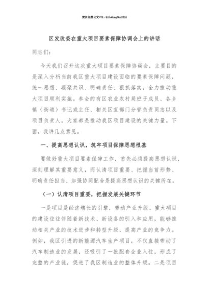 【七哥公文】2025年:【七哥公文】区发改委在重大项目要素保障协调会上的讲话+更多免费公文+VX:QiGeGongWen2024+更多免费公文+VX:QiGeGongWen2024
