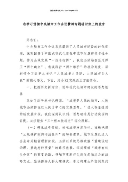 【七哥公文】2025年:【七哥公文】在学习贯彻中央城市工作会议精神专题研讨班上的发言+更多免费公文+VX:QiGeGongWen2024+更多免费公文+VX:QiGeGongWen2024