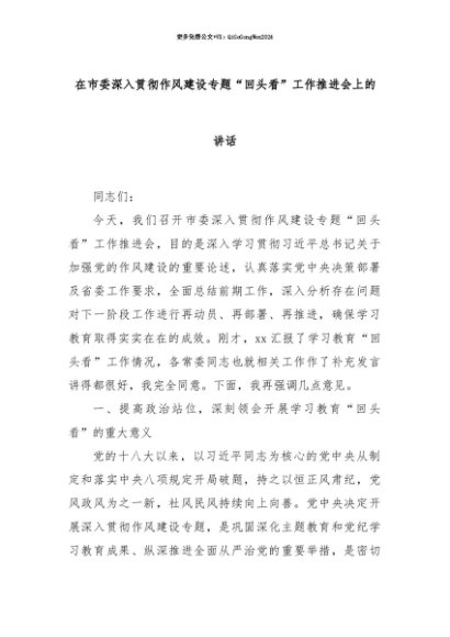 【七哥公文】2025年:【七哥公文】在市委深入贯彻作风建设专题“回头看”工作推进会上的讲话+更多免费公文+VX:QiGeGongWen2024+更多免费公文+VX:QiGeGongWen2024