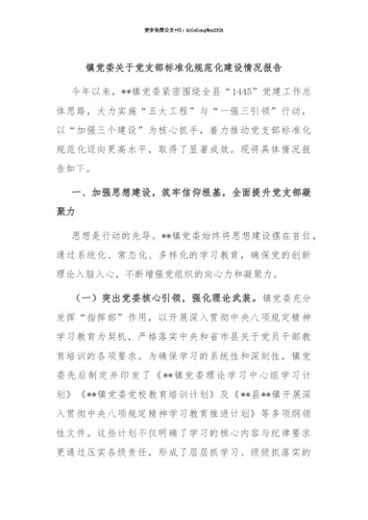 【七哥公文】2025年:【七哥公文】镇党委关于党支部标准化规范化建设情况报告+更多免费公文+VX:QiGeGongWen2024+更多免费公文+VX:QiGeGongWen2024