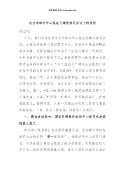 【七哥公文】2025年:【七哥公文】在全市综治中心规范化建设推进会议上的讲话+更多免费公文+VX:QiGeGongWen2024+更多免费公文+VX:QiGeGongWen2024