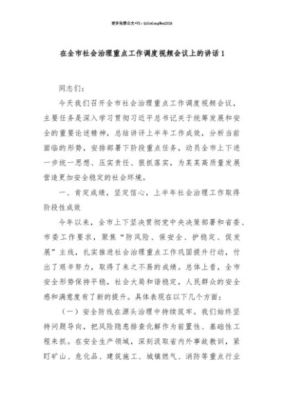 【七哥公文】2025年:【七哥公文】在全市社会治理重点工作调度视频会议上的讲话1+更多免费公文+VX:QiGeGongWen2024+更多免费公文+VX:QiGeGongWen2024