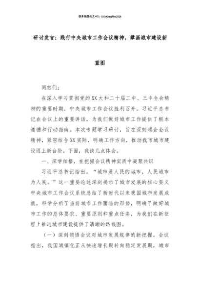 【七哥公文】2025年:【七哥公文】研讨发言:践行中央城市工作会议精神,擘画城市建设新蓝图+更多免费公文+VX:QiGeGongWen2024+更多免费公文+VX:QiGeGongWen2024