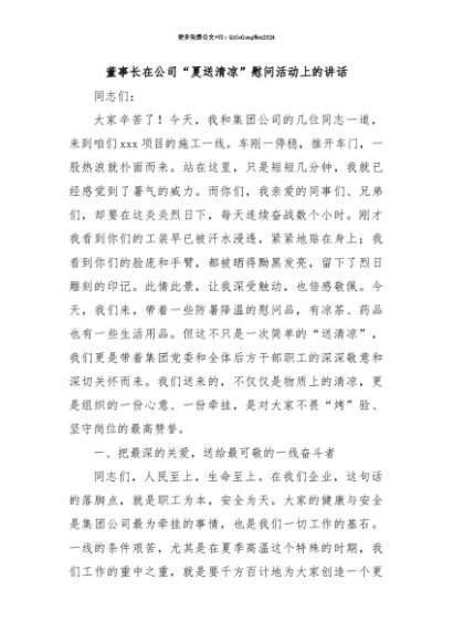 【七哥公文】2025年:【七哥公文】董事长在公司“夏送清凉”慰问活动上的讲话+更多免费公文+VX:QiGeGongWen2024+更多免费公文+VX:QiGeGongWen2024